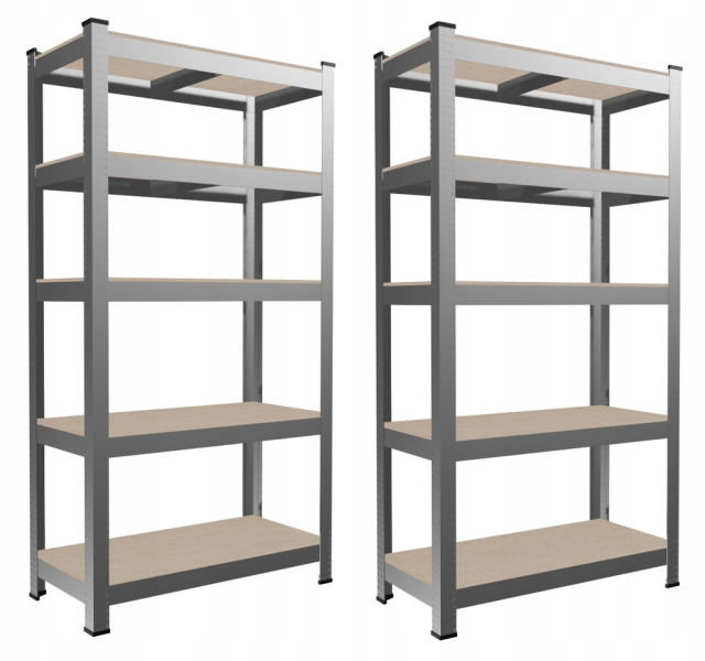 Набір із двох п’ятирівневих стелажів — це практичне рішення для організації простору. Виготовлені з металевих гальванізованих профілів та полиць із плит МДФ, вони забезпечують високу міцність і довговічність. Додаткові ребра жорсткості під кожною полицею зміцнюють конструкцію, а максимальне навантаження до 175 кг на полицю та до 875 кг на весь стелаж гарантує надійність у використанні. Завдяки простому монтажу стелажі швидко готові до використання.
