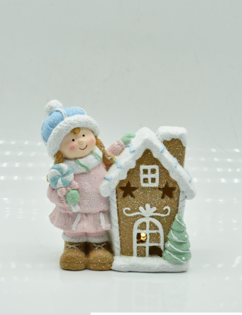 Новогодняя декоративная фигурка с подсветкой 15×8×16 см Новогодний декор Девочка с пряничным домиком из фарфора CR-6-4, Одеса