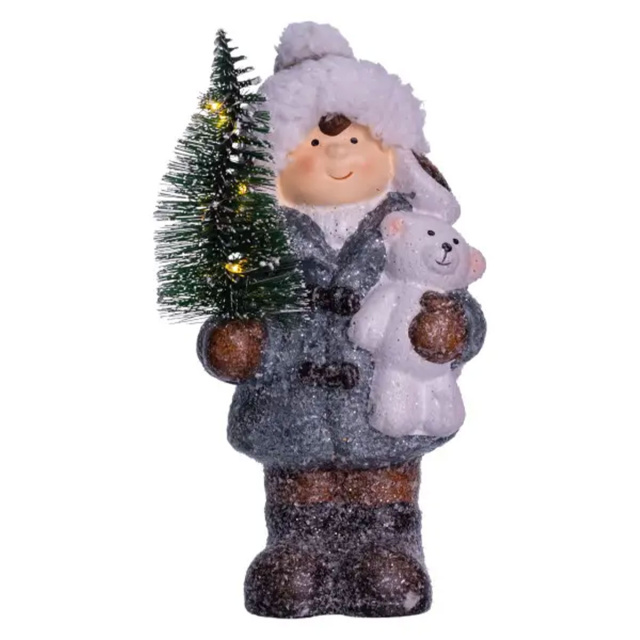 Очаровательная фарфоровая фигурка с новогодним настроением. Девочка с елкой — композиция, которая мгновенно создаёт атмосферу тепла и уюта. Поверхность изделия покрыта лёгким «снежным» напылением, а ёлочка украшена миниатюрными огоньками. Особый шарм фигурке придаёт подстветка, которая мягко освещает комнату, делая её ещё более уютной и праздничной. Основные характеристики новогодней фигурки для дома на подарок: Материал: фарфор; Размер: 10×9×18 см. Фигурка станет отличным элементом новогоднего оформления дома, офиса, витрины магазина или детской комнаты, добавляя интерьеру уют и праздничное настроение.