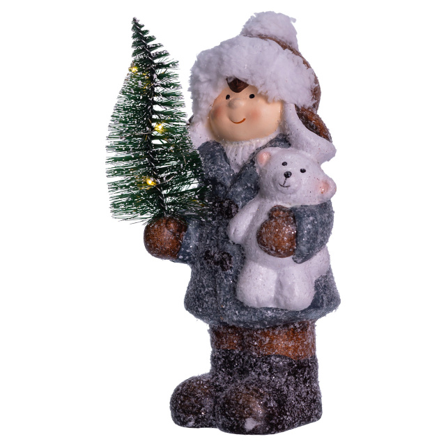 Новогодняя фигурка с подстветкой Девочка с елкой из фарфора 10×9×18 (см) CR-5-16, Одеса