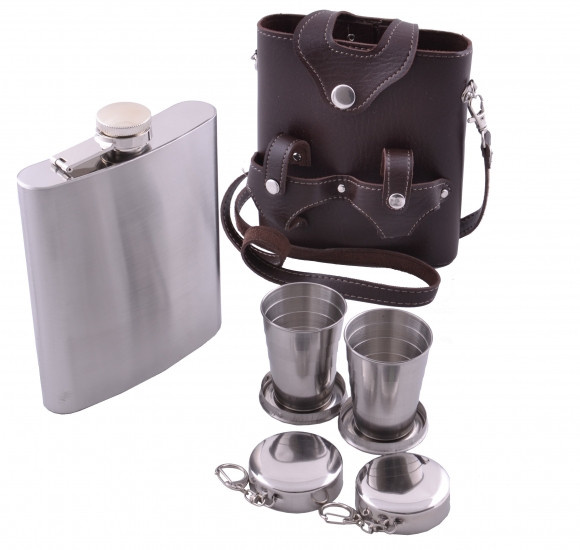Фляга большая - набор с чехлом и стопками