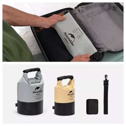 Гермомішок Fitness Aqua Naturehike 6 л NH21FSB03 розрахований для занять спортом на природі або вдома. Наповнюється певною кількістю води, і використовується як навантажувач на руки та плечову частину тіла. Завдяки додатковому ременю можна носити гермомішок Naturehike на плечі. Матеріал міцний та стійкий до розривів. Завдяки спеціальній застібці закривається шляхом щільного згортання верху з подальшою фіксацією ремінцем.