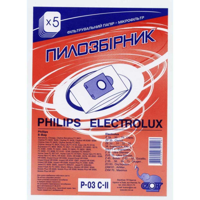 Одноразові пилозбірники для пилососа СЛОН P-03 С-ІІ Philips / Electrolux, Одеса