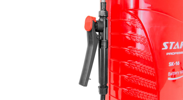 Обприскувач акумуляторний Start Pro SK-16 має компактний розмір та легку вагу (5,5 кг). Зручний, економічний, простий у обслуговуванні. Призначається для хімічної обробки насаджень з метою захисту від шкідників та хвороб, а також для боротьби з бур'янами. Може також використовуватись для дезінфекції, миття вікон, стін, автомобілів. Обприскувач акумуляторний Start Pro оснащений автоматичною помпою, алюмінієвою телескопічною розпилювальною трубкою з форсунками, додатково обладнаний індикатором заряду акумулятора, який дозволить Вам стежити за рівнем заряду акумулятора. Обприскувач з об'ємом бака на 16 літрів.