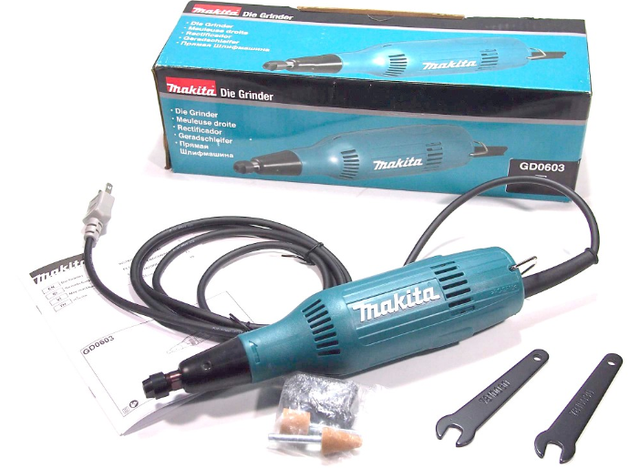 Пряма шліфувальна машина Makita GD 0603: переваги Машина призначена для шліфування металевих деталей та видалення дефектів на литих деталях Коротка