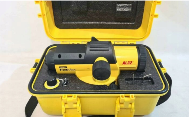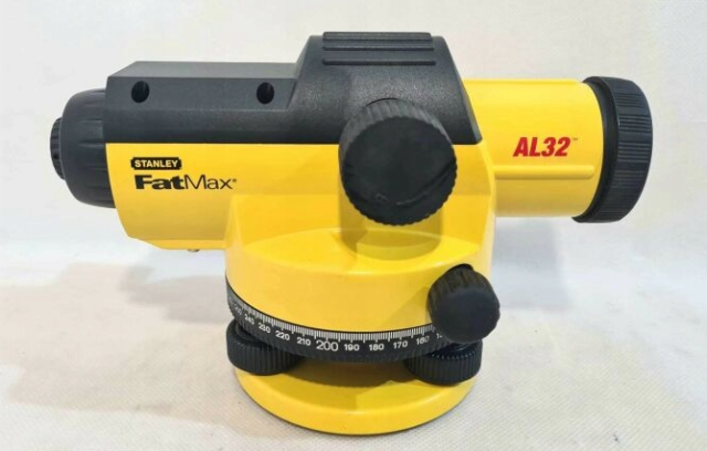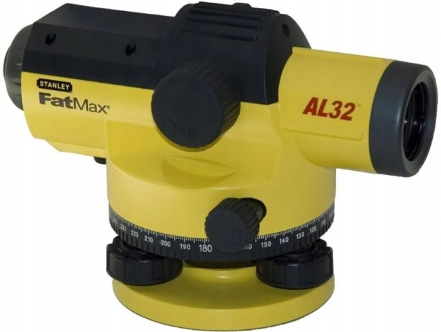 Оптичний нівелір Stanley 1-77-245 FatMax AL32 у вигляді трубки на основі (тригері). На підставі є три підйомні гвинти для зміни нахилу труби у двох площинах, які взаємно перпендикулярні, що дозволяє досягти точного горизонтального розташування.