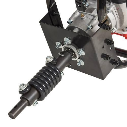 Редуктор виготовлений з міцного металу, має велику надійність і довговічність. Передавальне число 25:1 у відповідну кількість разів знижує частоту обертання бура в порівнянні з двигуном і підвищує момент, що крутить. Це дозволяє при порівняно помірних потужності та вазі двигуна застосовувати досить продуктивні бурові шнеки. При зіткненні шнека із занадто твердими перешкодами та ударному наростанні навантаження автоматична відцентрова муфта зчеплення припиняє передачу та оберігає двигун від перевантаження. Також для захисту двигуна при ударах шнека про перешкоди застосовано пружинний амортизатор.