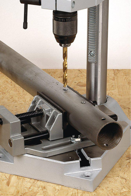 За допомогою сверлильно стійкою wolfcraft ви можете виконувати контрольоване свердління заготовок в бажаному місці і на заданій глибині. Для цього служить циліндрична опора 40 мм з навіченной зубчастої рейкою довжиною 420 мм для прямого свердління без прокручування. Затискач по Євростандарту з Ø 43 мм сумісний з усіма стандартними свердлильними машинами. За допомогою обмежувача глибини з швидкої регулюванням і шкали можна встановлювати глибину свердління з точністю до міліметрів. Рейковий привід забезпечує зручну, плавну і точне регулювання висоти блоку управління разом з свердлувальною машиною. Використовуйте 3-плечовий важіль подачі для легкого опускання Поворотна пружина допомагає вам при поверненні машини. Навіть дрібні деталі важливі, тому власник кабелю гарантує, що шнур живлення для свердлильної машини прокладений акуратно. Ви можете прикріпити лещата в затискних пазах, щоб надійно утримувати заготовку в потрібному положенні. Розумний помічник, який стане в нагоді в будь-якій майстерні.