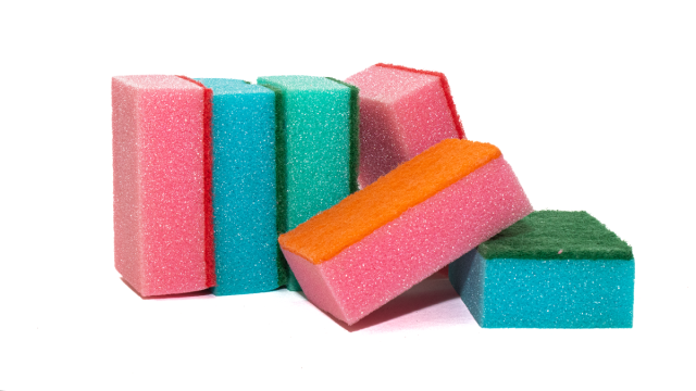 Порада від «Маминих Хитрощів»: Використовуйте різні кольори губок з набору для зонування. Наприклад, червона — для жирного посуду, жовта — для чашок та скла, зелена — для раковини.