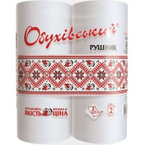 Рушники паперові, 2 рулонів в упаковці, матеріал основи - 100% целлюлоза, кількість шарів - 2, кількість відривів - 38 листів, діаметр гільзи - 50 мм, тиснення та перфорація, колір білий