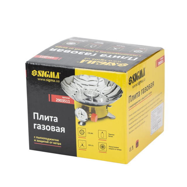 Міні газова плита мобільного типу з п'єзопідпалом і захистом від вітру, SIGMA (модель 2903511)