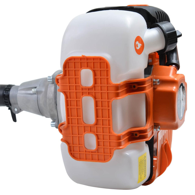 Довгу роботу коси забезпечує надійний двигун, що розвиває 8 000 об/хв, великий маховик, охолоджуючий двигун під час роботи і великий бак для паливної суміші.