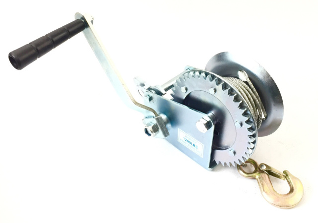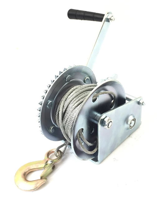 Барабанна лебідка ручна LEX для горизонтального і похилого втягування невеликих вантажів, човнів, наземних транспортних засобів та інших предметів. Має міцну сталеву конструкцію. Посилені зубчасті колеса. Храпові двонаправлений механізм. Гак з запобіжником.