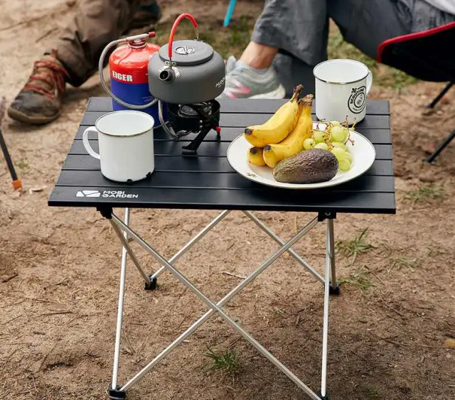 Розкладний стіл Mobi Garden SD table alu вирізняється своєю зручністю у складанні та ергономічністю під час транспортування. Його унікальна конструкція стільниці, що складається з окремих алюмінієвих секцій, забезпечує легкість та міцність. Алюмінієвий каркас, стійкий до корозії, гарантує довговічність виробу. Стіл витримує навантаження до 30 кг, що робить його надійним помічником для кемпінгу та пікніків. Ніжки оснащені протиковзкими накладками, що забезпечують стабільність на різних поверхнях. Характеристики: Розміри у розкладеному вигляді: 56х40х40 см Розміри у складеному вигляді: 56х9х5 см Максимальне навантаження: 30 кг Матеріал стільниці: 6063 алюмінієвий сплав Матеріал каркаса: 6063 алюмінієвий сплав Вага: 1.5 кг