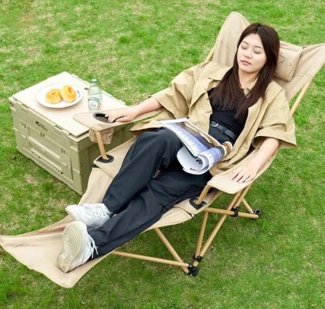 Розкладне крісло Mobi Garden Recliner створене з високоякісних матеріалів, ідеально підходить для туризму, кемпінгу або риболовлі. Воно має зручну складну конструкцію, що дозволяє легко транспортувати. Підлокітники оснащені підстаканником для чашки, а підставка для ніг може бути від'єднана за потреби. Крісло фіксується у двох положеннях: 90 і 140 . Збоку є кишеня для дрібниць. Сидіння виготовлене з міцного поліестеру Oxford 600D, а каркас з алюмінієвого сплаву. У комплекті є чохол для зручного транспортування. Характеристики: Розміри у розкладеному вигляді: 80.5х124.5х88.5 см Розміри у складеному вигляді: 24х23х93 см Висота сидіння: 34 см Матеріал сидіння: Oxford 600D поліестер Матеріал каркаса: алюмінієвий сплав Максимальне навантаження: 110 кг Вага: 4.6 кг