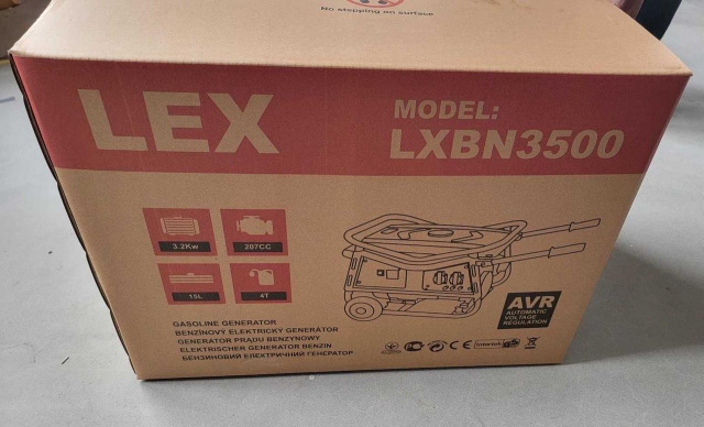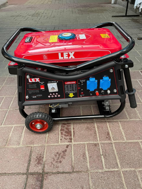 LEX LXBN3500 - однофазний бензогенератор з 4-тактним двигуном. Запропоновано для автономного енергоощадження, виробництва електроенергії для освітлення, побутової техніки, електроприладів і інструментів, для зарядки автомобільних акумуляторів. Має ручний старт. На виході, окрім звичайних мережевих напруження змінного струму 220 В, бензогенеатор видає напругу постійного струму 12 В. Двигун агрегата має хромований поршен, тому відрізняється тихою і плавною роботою.