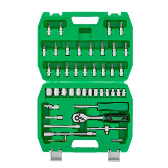 Набір укомплектований у зручний пластиковий кейс. Наявність великого набору торцевих головок і викруткових біт робить набір придатним для широкого спектра робіт. Завдяки суворому дотриманню технології виробництва, весь інструмент характеризується точністю і відсутністю дефектів.