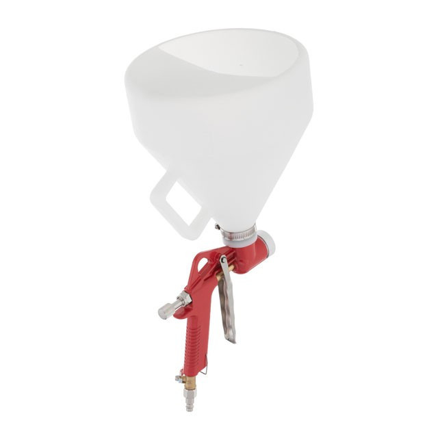 Штукатурний розпилювач РТ-0402 використовується для нанесення штукатурки різних видів та консистенції. Найчастіше його називають хопер, проекційний розпилювач або пневматичний шубомет. Різні за розміром діаметри форсунок: 4 мм, 6 мм та 8 мм, дозволяють працювати з матеріалами різної консистенції. Обсяг верхнього бачка становить 7 л, а матеріал з якого він зроблений - пластик. Робочий тиск до 6 атмосфер. Перевагою інструменту є поєднання економічної витрати матеріалу з швидким та якісним виконанням роботи.