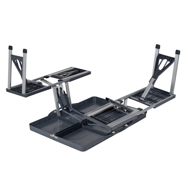 - Стол и стулья компактно складываются, трансформируясь в пластиковый кейс с ручкой