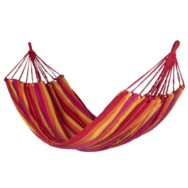 Выбрались на природу, дачу или в кемпинг - возьмите с собой гамак Bo-Camp Rumba Sunset. С ним ваш отдых будет не только приятным, но и стильным, благодаря веселой расцветке гамака, которая никого не оставит равнодушным. А качество изготовления гамака будет радовать долгие годы. Классическая форма гамака обволакивает тело для максимального комфорта, а ткань из поликоттона воздухопроницаема, более комфортна для кожи по сравнению с полностью синтетическими тканями, но в то же время и более прочная чем хлопок. Яркий и стильный, гамак Bo-Camp Rumba Sunset поставляется с чехлом для удобной транспортировки и компактного хранения.