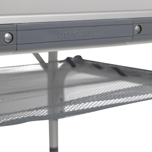 Термостойкая и водостойкая столешница позволяет использовать этот стол по назначению, не беспокоясь о том, что его поверхность будет повреждена горячей или мокрой посудой. Стол имеет две возможные высоты установки, а также микрорегулировку каждой ножки для того, чтобы выставить столешницу горизонтально на неровной местности.Bo-Camp Premium 100x70 cm в сложенном виде представляет собой наиболее плоскую модель производителя, что делает его удобным при хранении. Для удобства транспортировки предусмотрена пластиковая ручка. Раскладной стол Bo-Camp Premium 100x70 cm - полноценный широкий стол для комфортного размещения шести человек.