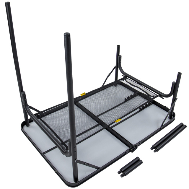 - Сбоку столешницы имеется пластиковая ручка для транспортировки стола в собранном виде