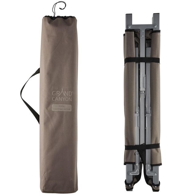 Grand Canyon Topaz L имеет прочный и легкий каркас из анодированного алюминия. Поверхность выполнена из прочной и износостойкой ткани Polyester Oxford 600D. Кровать легко складывается в фрме тубуса, и переносится в удобном чехле с ручкой, который поставляется в комплекте. Кровать займет минимум места в багажнике вашего авто или дома при хранении. Grand Canyon Topaz L отлично подойдет для поездок на природу, на дачу и сделает ваш отдых приятным и комфортным, а утро легким и радостным.