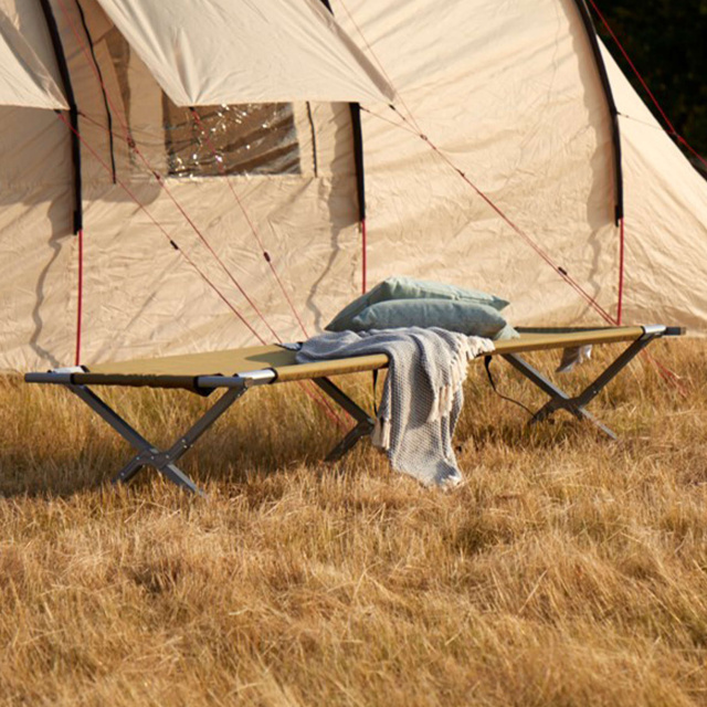 Сверхпрочная раскладная кровать для высоких людей с крупной комплекции Grand Canyon Topaz L Falcon имеет длину 210 см и выдерживает до 150 кг статической нагрузки. Все детали кровати скреплены между собой и не могут потеряться в походе, а отсутствие поперечин в голове и в ногах, как в кроватях других производителей, ускоряет сборку и раскладывание и позволяет полностью использовать полезную площадь спального места.