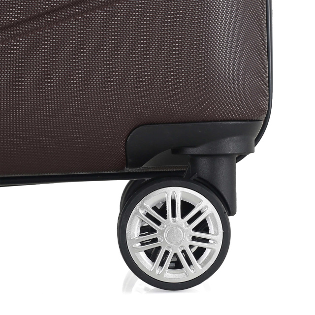 - Полноповоротные колеса - данная модель оснащена четырьмя спаренными колесами, вращающимися на 360°. Облегченные cпаренные колеса со спицами обеспечивают лучшее распределение веса и устойчивость чемодана, отличное сцепление, маневренность и большую износостойкость. Колеса крепятся на 4 винта изнутри, что обеспечивает высокую стойкость при ударной нагрузке с любой стороны, и позволяет их заменить при износе.
