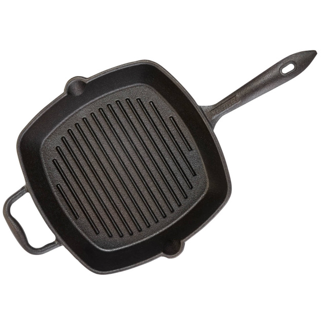 Groenberg Nabro Pan 28x28 cm/2 L Black - это чугунная квадратная сковорода для интенсивной жарки и грилирования на плите, в духовке или просто над открытым огнем. Приподнятые ребра создают характерный гриль-рисунок и аппетитную корочку, давая жиру возможность стекать вниз. Благодаря носикам с обеих сторон сковороды лишний жир или жидкость легко слить. Благодаря высококачественному литому чугуну сковородка равномерно распределяет тепло, удерживая температуру долгое время.