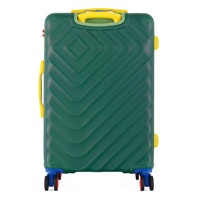 - Полноповоротные колеса - данная модель оснащена четырьмя спаренными колесами, вращающимися на 360°. Спаренные колеса обеспечивают лучшее распределение веса и устойчивость чемодана, отличное сцепление, маневренность и большую износостойкость. Колеса крепятся на 5 винтов изнутри, что обеспечивает максимальную стойкость при ударной нагрузке с любой стороны, и позволяет их заменить при износе.