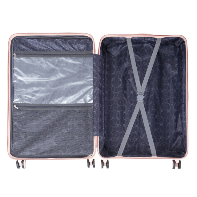 - Чемодан имеет текстильную перегородку на молнии, которая разделяет внутреннее пространство на два основных отделения, и оснащен двумя карманами на молнии для мелких вещей.