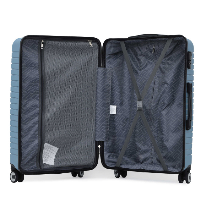 - Чемодан имеет текстильную перегородку на молнии, которая разделяет внутреннее пространство на два основных отделения, и оснащена карманом для мелких вещей.