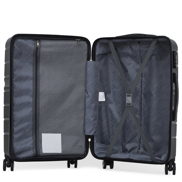 - Чемодан имеет текстильную перегородку на молнии, которая разделяет внутреннее пространство на два основных отделения, и оснащена карманом для мелких вещей.