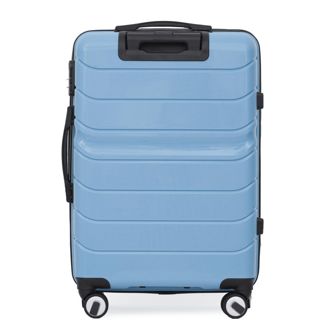 Одни из самых легких и надежных чемоданов Semi Line T5616 изготовлены из полипропилена – на сегодняшний день наиболее оптимального материала с точки зрения сочетания прочности и веса. При случайных ударах корпус чемодана только прогибается и принимает начальную форму после снятия нагрузки. Чемодан оснащен легкой алюминиевой телескопической ручкой, а ручки для переноски чемодана в руках имеют мягкую гелевую подкладку. Кодовый замок призван защитить содержимое вашего чемодана. Сочетание матовых и глянцевых полосок на лицевом и тыльном фасаде чемодана создает интересный узор и игру света. Четыре боковых ножка позволяют поставить чемодан на бок не повредив его