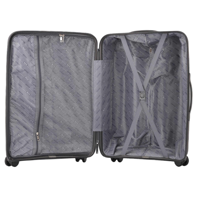 - Чемодан имеет текстильную перегородку на молнии, которая разделяет внутреннее пространство на два основных отделения, и оснащена карманом для мелких вещей.