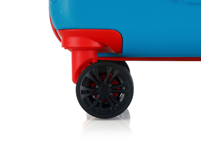 - Полноповоротные колеса - данная модель оснащена четырьмя спаренными колесами, вращающимися на 360°. Облегченные cпаренные колеса со спицами обеспечивают лучшее распределение веса и устойчивость чемодана, отличное сцепление, маневренность и большую износостойкость. Колеса крепятся на 4 винта изнутри, что обеспечивает высокую стойкость при ударной нагрузке с любой стороны, и позволяет их заменить при износе.