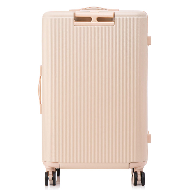 Интересным и более удобным решением является размещение кодового замка сверху, а абсолютно вся фурнитура выполнена в одном цвете с корпусом чемодана.