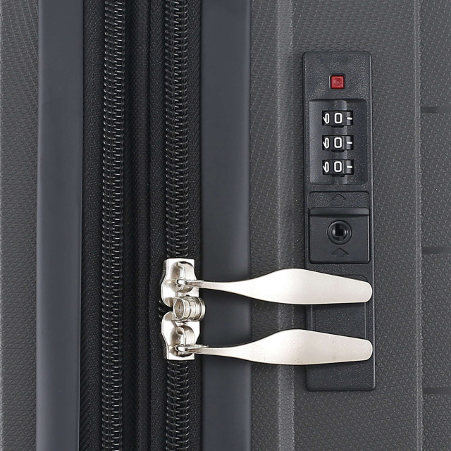 - Кодовый замок - чемодан оснащен "утопленным" кодовым замком, находящимся в одной плоскости с корпусом, и не выступающим наружу. Замок не позволяет открыть чемодан ключом или другим металлическим предметом снаружи. Замочная скважина, расположенная на замке, не имеет практического применения и сделана исключительно с декоративной целью. Замок можно открыть только зная трехзначный код.