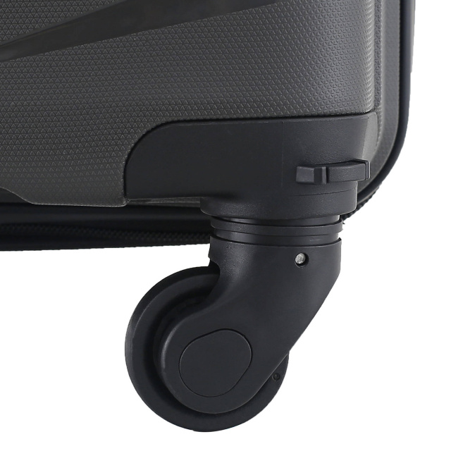 - Съемные колеса - чемодан имеет съемные колеса, что позволяет уберечь их от поломки третьими лицами в багажных отделениях и при передвижении багажными лентами в аэропортах. Также, благодаря съемным колесам, чемоданы одной модели разных размеров можно компактно хранить друг в друге. Для того чтобы присоединить или отсоединить колеса от чемодана – достаточно нажать на кнопки, расположенные по периметру дна чемодана. Весь процесс занимает несколько секунд. Колеса вращаются на 360° и обеспечивают необходимую маневренность чемодану. Пластиковые пазы, куда вставляются колеса, крепятся на 4 винта изнутри, что обеспечивает высокую стойкость при ударной нагрузке с любой стороны, и позволяет их заменить при износе.