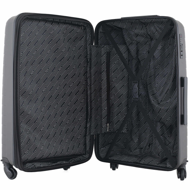 - Чемодан имеет текстильную перегородку на молнии, которая разделяет внутреннее пространство на два основных отделения.