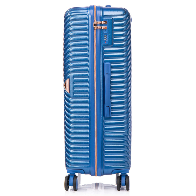 Действительно большие спаренные колеса, два внутренних кармана на молнии, не выступающий над корпусом аккуратный кодовый замок, мягкия гелевые накладки на ручках, невероятно привлекательный и приятный на ощупь волнистый корпус с микропрофилем скрывающим все царапины, и отсутствие лишних элементов декора, все это делает чемодан Semi Line T5727 наиболее удобным и практичным в ассортименте производителя.