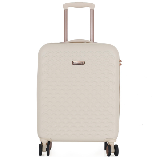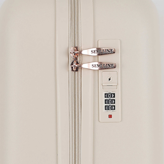 Чемодан Semi Line T5791 в современном цвете эркю (цвет неотбеленного шолка), с многочисленными металлическими и пластиковыми вставками под золото, и волнистым узором фасада выглядит достаточно изысканно. Он оснащен легкой алюминиевой телескопической ручкой, которая фиксируется в двух положениях, а ручка для переноски чемодана в руках выполнена из приятного на ощупь пластика Soft-Touch. "Утопленный" кодовый замок призван защитить содержимое вашего чемодана, а также не выступает над корпусом, так что его невозможно случайно повредить при транспортировке чемодана. Semi Line T5791-1 удовлетворяет требованиям к максимальному размеру багажа, провозимого в качестве ручной клади в самолетах большинства авиакомпаний мира.