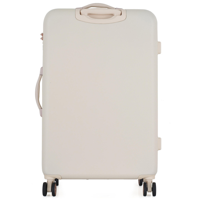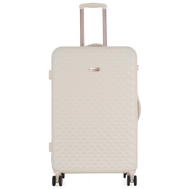 Чемодан Semi Line T5791 в современном цвете эркю (цвет неотбеленного шолка), с многочисленными металлическими и пластиковыми вставками под золото и волнистым узором фасада выглядит достаточно изысканно. Он оснащен легкой алюминиевой телескопической ручкой, которая фиксируется в трех положениях, а ручки для переноски чемодана в руках выполнены из приятного на ощупь пластика Soft-Touch. "Утопленный" кодовый замок призван защитить содержимое вашего чемодана, а также не выступает над корпусом, так что его невозможно случайно повредить при транспортировке чемодана.