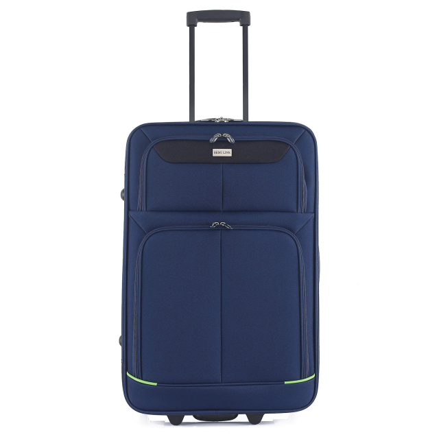 Две зеленые полосы на фасаде делают вид чемодана более выразительным, а главное позволят быстрее найти именно ваш чемодан в багажных отделениях среди многих других похожих чемоданов. Два глубоких кармана на фасаде способны вместить большое количество вещей первой необходимости. Для размещения мелких вещей внутри чемодана предусмотрен отдельный карман на молнии. Телескопическая стальная ручка фиксируется в двух положениях.