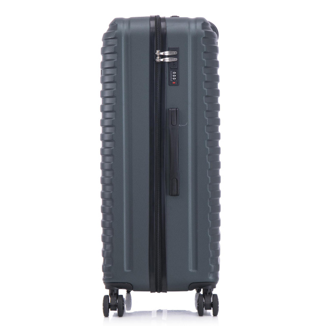 - Полноповоротные колеса - данная модель оснащена четырьмя спаренными колесами, вращающимися на 360°. Спаренные колеса обеспечивают лучшее распределение веса и устойчивость чемодана, отличное сцепление, маневренность и большую износостойкость. Колеса крепятся на 5 винтов изнутри, что обеспечивает максимальную стойкость при ударной нагрузке с любой стороны, и позволяет их заменить при износе.