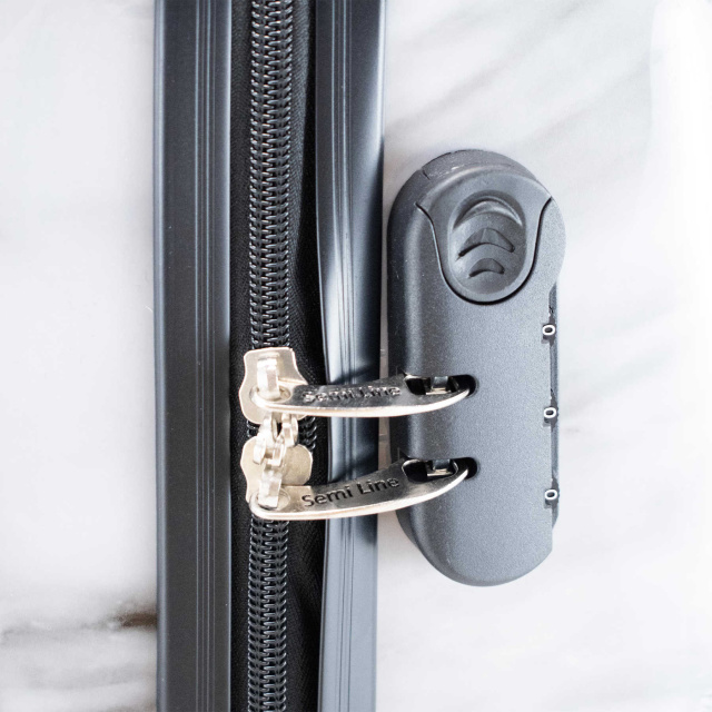 Чемодан Semi Line T5731-2 имеет гладкую глянцевую поверхность с чрезвычайно реалистичным принтом, который даже с близкого расстояния не отличим от настоящего полированного мрамора. К тому же это надежный чемодан, корпус которого сделан из прочного композита поликарбоната и ABS-пластика.