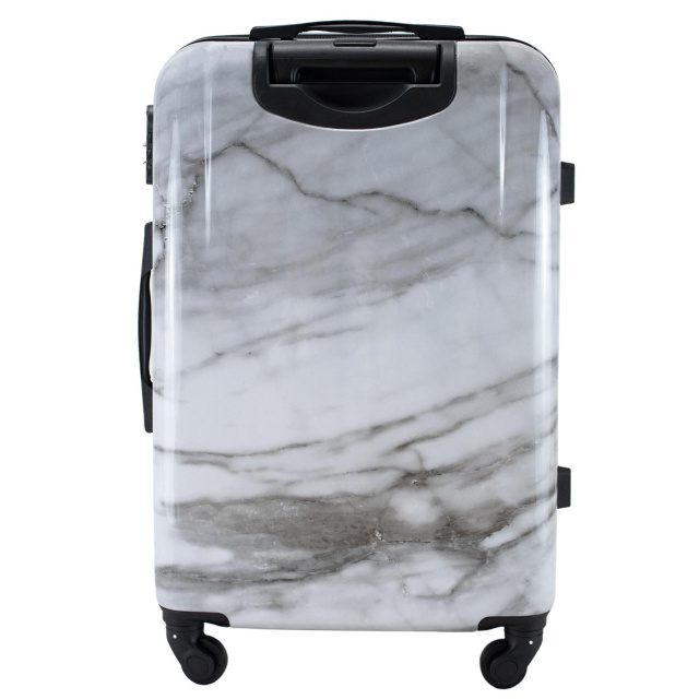 Чемодан Semi Line T5731-3 имеет гладкую глянцевую поверхность с чрезвычайно реалистичным принтом, который даже с близкого расстояния не отличим от настоящего полированного мрамора. К тому же это надежный чемодан, корпус которого сделан из прочного композита поликарбоната и ABS-пластика.