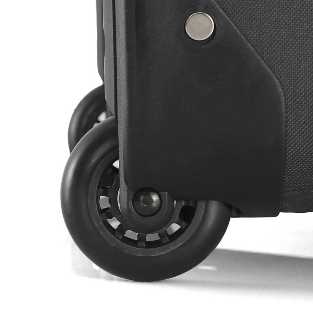 - Скрытые колеса большого диаметра - данная модель оборудована двумя колесами, которые с обеих сторон защищены пластиковыми бортами. Полиуретановые колеса имеют достаточно большой диаметр, что обеспечивает более плавное качение даже по неровным поверхностям. Чемоданы с парой скрытых колес более защищены от поломок вследствие ударов и падений.