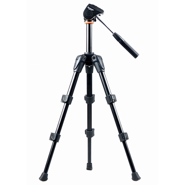 Часто для удобства наблюдения в подзорную трубу в полевых условиях требуется невысокий, но надежный штатив, который будет настолько легким и компактным, что его не трудно будет разместить в рюкзаке за плечами. Именно таким является штатив Espod CX 1 от компании Vanguard. Благодаря эксцентриковым замкам быстрой фиксации, трехсекционные телескопические ножки за пару секунд позволяют установить и надежно зафиксировать штатив на высоте до 45 см, а выдвижная центральная колонна при необходимости увеличит высоту еще на 10 см. Этот настольный штатив способен нести нагрузку до 2.5 кг, обеспечивая при этом устойчивость, потому отлично подойдет для большинства подзорных труб с диаметром объектива до 85 мм. Штатив будет удобен и для фотографов, на нем можно устанавливать беззеркальные камеры и легкие DSLR-камеры со штатными объективами.